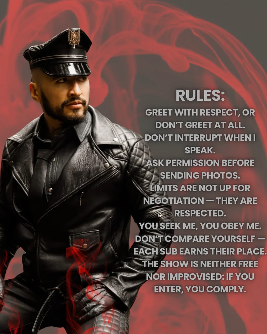 No estás de rodillas solo por mi cuerpo. Estás ahí porque tu mente ya se rindió ante la mía. Sientes que algo más fuerte que tú te empuja a obedecer, a mirar, a admirar… y no sabes exactamente por qué. Pero yo sí. Es mi presencia, mi poder, mi seguridad lo que te desarma sin levantar la voz. Cada fibra de mis músculos, cada palabra que digo, cada mirada que te lanzo, te hace sentir más pequeño, más entregado. No porque te lo ordene… sino porque lo deseas. Porque en el fondo, sabes que estar a mis pies no es humillación, es privilegio. Y lo único que necesitas es asegurarte de que yo esté satisfecho.